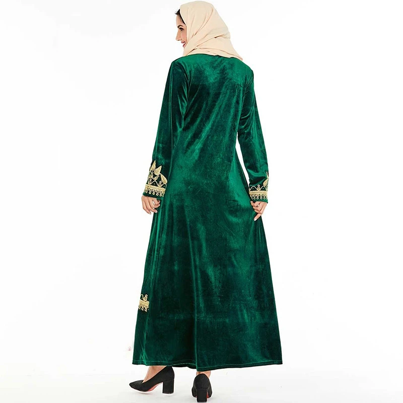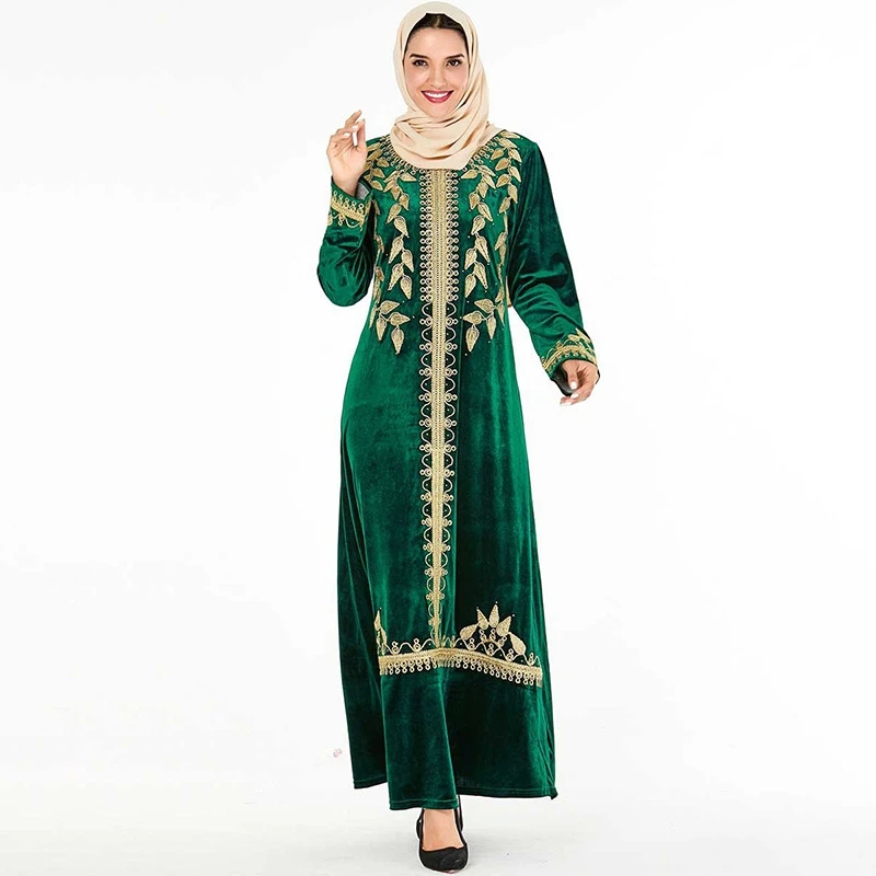 Robe maxi en velours avec broderies et une grande jupe évasée