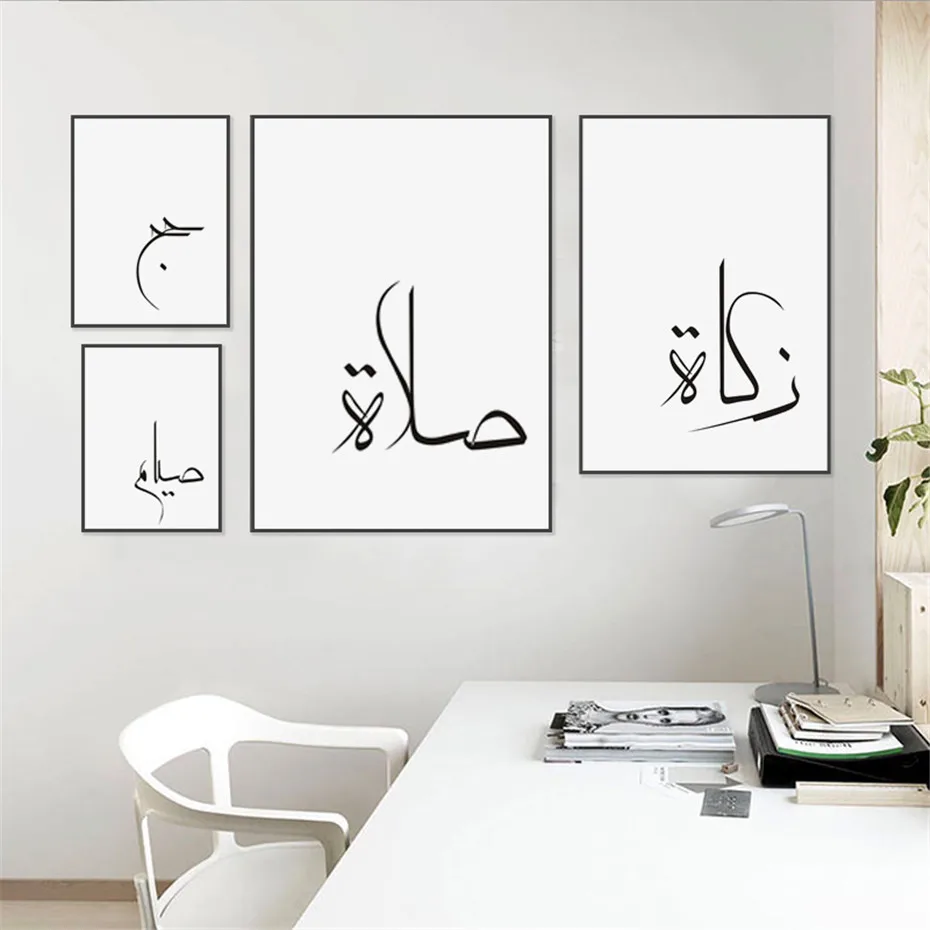Tableau décoratif représentant les cinq piliers de l’Islam en calligraphie arabe.