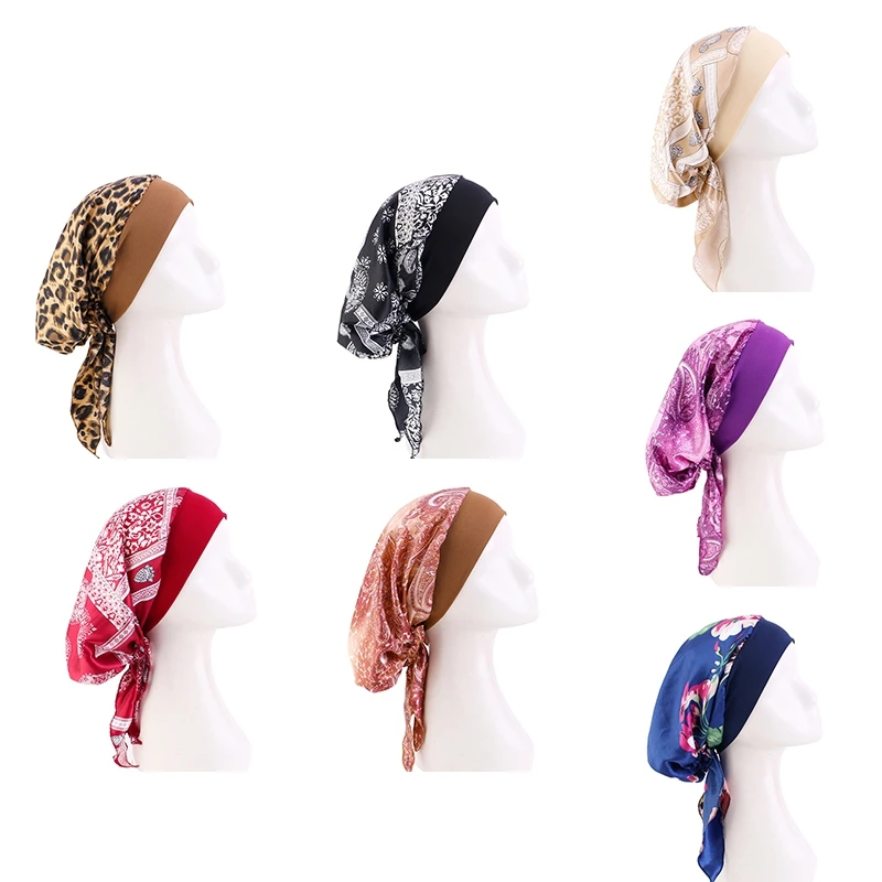 Satin print turban cap stretch wide-brimmed nightcap strap pirate hat head hat
